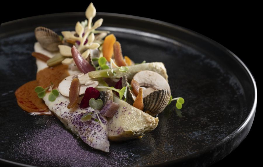 Compressé d’épaule d’agneau cuit 12 heures, légumes d’un navarin, houmous de patate douce, jus au parfum Oriental32 €