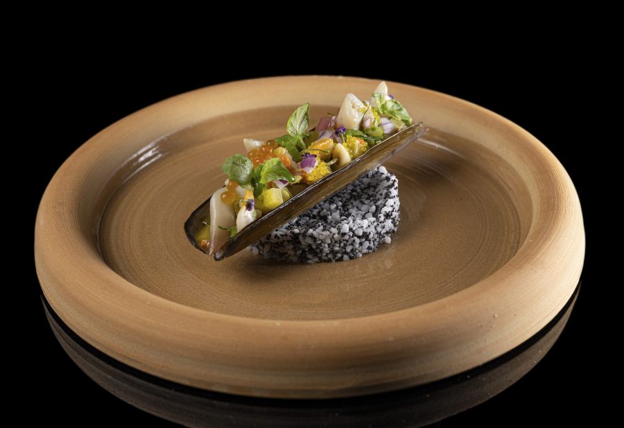 L’encornet farci au boudin Basque et secreto Ibérique, crémeux paprika, persil, risotto de topinambour épinards jus de viande20 €
